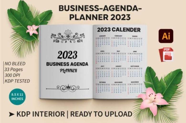 Editable KDP business planner agenda 2023. You will get high quality print-ready professional KDP interior for professional or casual use with PDF